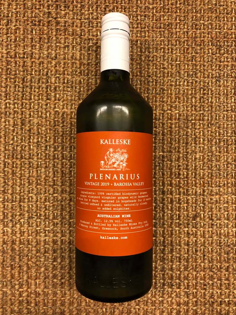 The 2019 Kalleske Plenarius is a Viognier orange style from the Barossa Valley in South Australia.  The colour is of a classic autumnal sunset with its slightly burnt orange hue. The nose is highly aromatic with marmalade and floral notes and kumquats, stone fruits, and lemon zest.  Lychees burst forth as if the shell has been freshly pierced.  On the palate, the marmalade on toast blends with the funkiness of the skin contact.  It is rustic, textural, grippy, oily, and earthy, with each melding together to splay flavours into the sky and leave a smile of wonderment on your face.